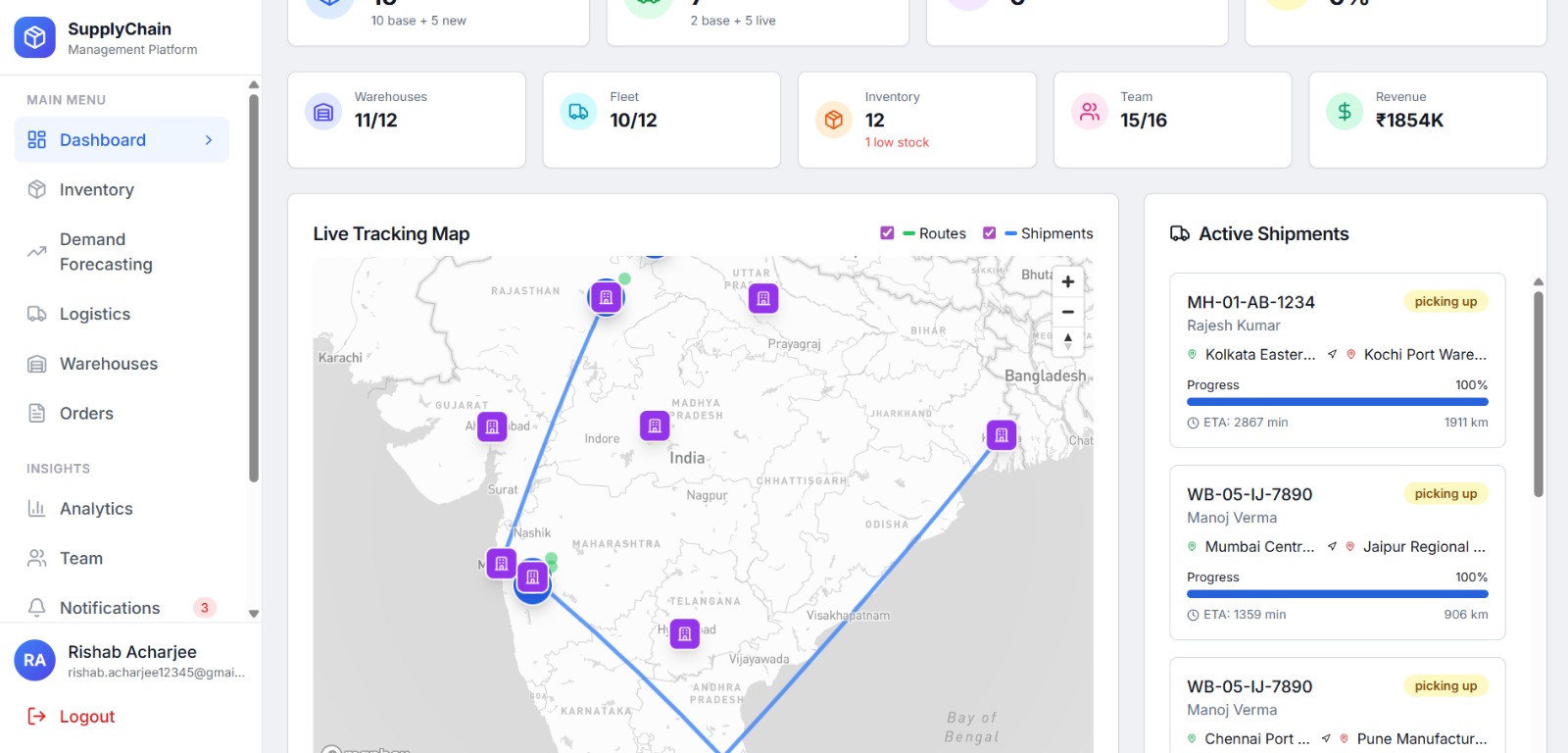 Cloud-native logistics optimization platform for 200+ retail outlets with AI-powered demand forecasting and intelligent routing.